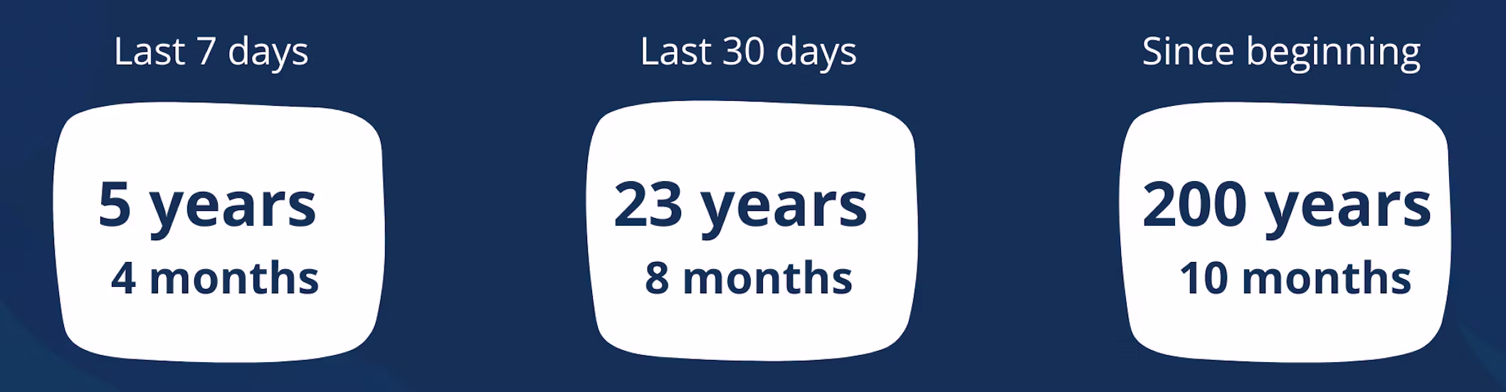 - Last 7 days: 5 years 4 months 2 days 2 hours 32 minutes 46 seconds